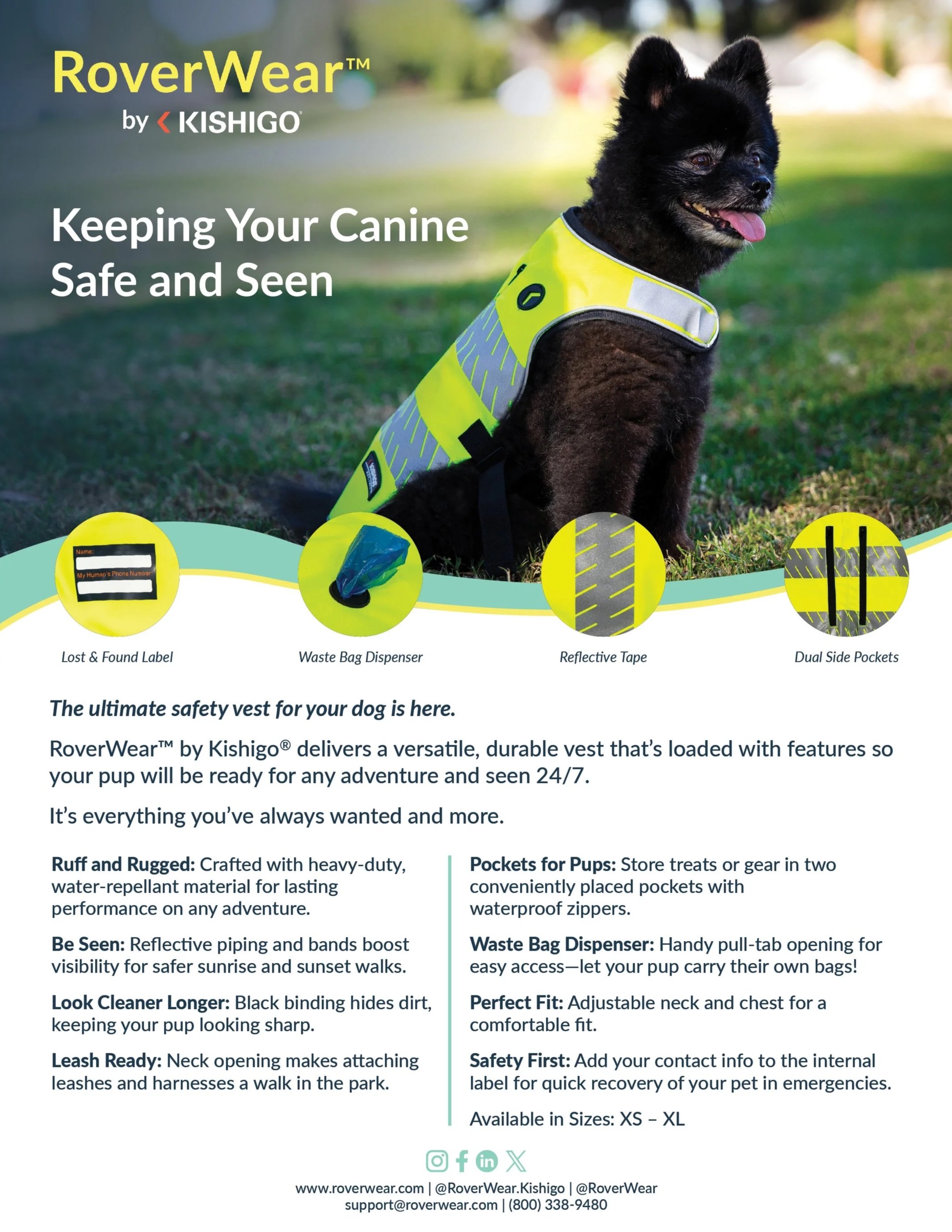 I was in charge of designing the graphic assets for Kishigo’s new product line, RoverWear: