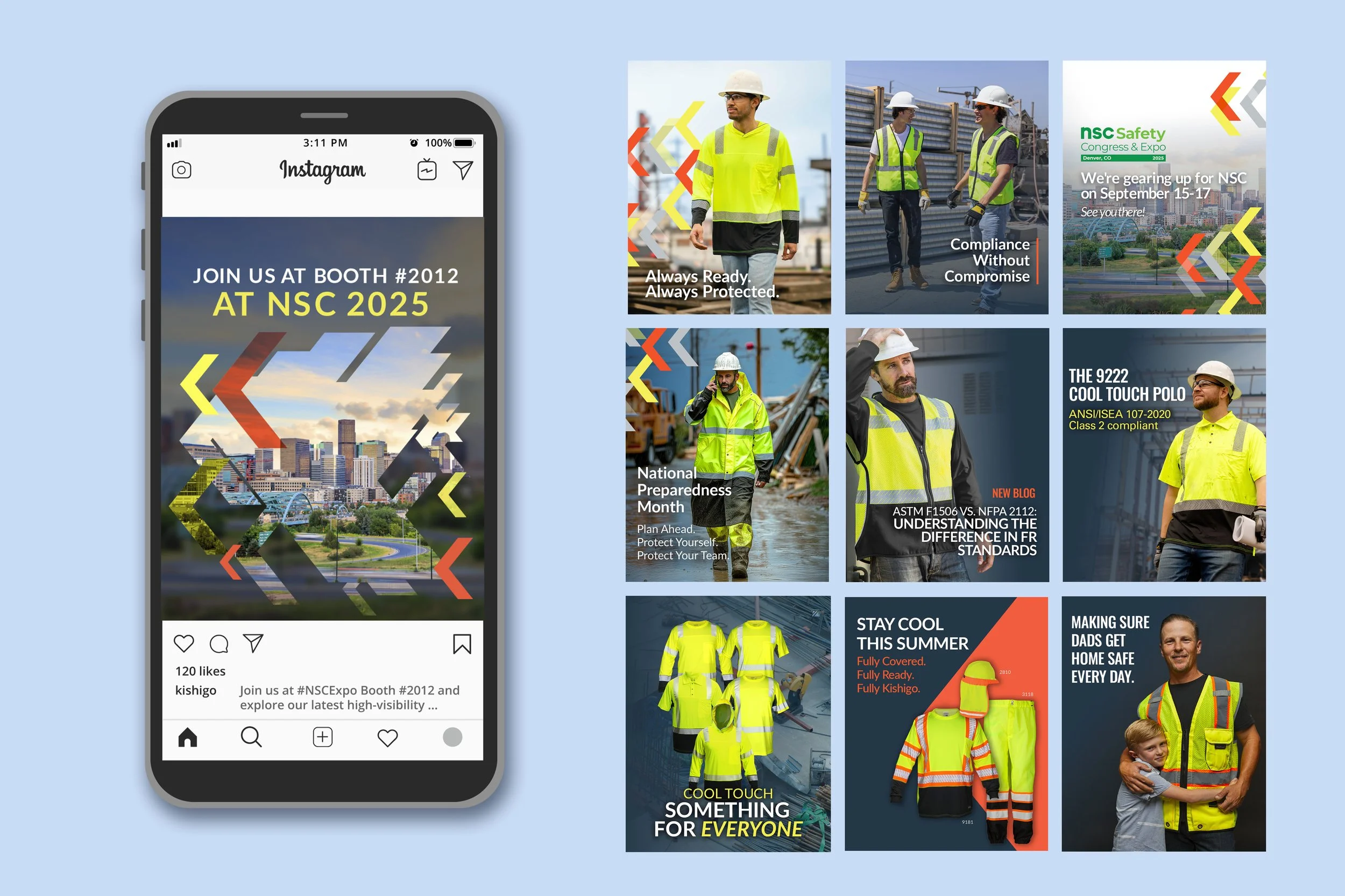 I designed custom social media and email marketing graphics for Kishigo, a leader in high-visibility apparel. My work included developing bold, brand-aligned visuals that highlighted products, promotions, and events while maintaining consistency across digital platforms. These designs supported Kishigo’s marketing campaigns by driving engagement, reinforcing brand identity, and creating a cohesive visual experience for their audience.